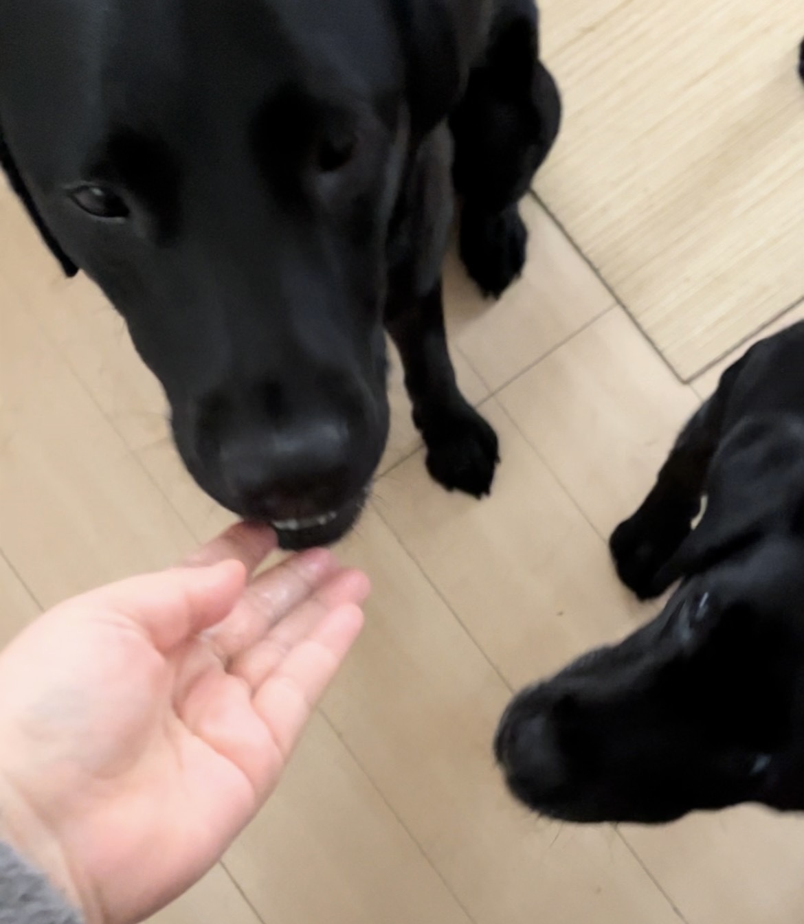 封を開けたら、ワンコたちが飛んできた💦食いつき抜群、ヨダレの滝です🤤