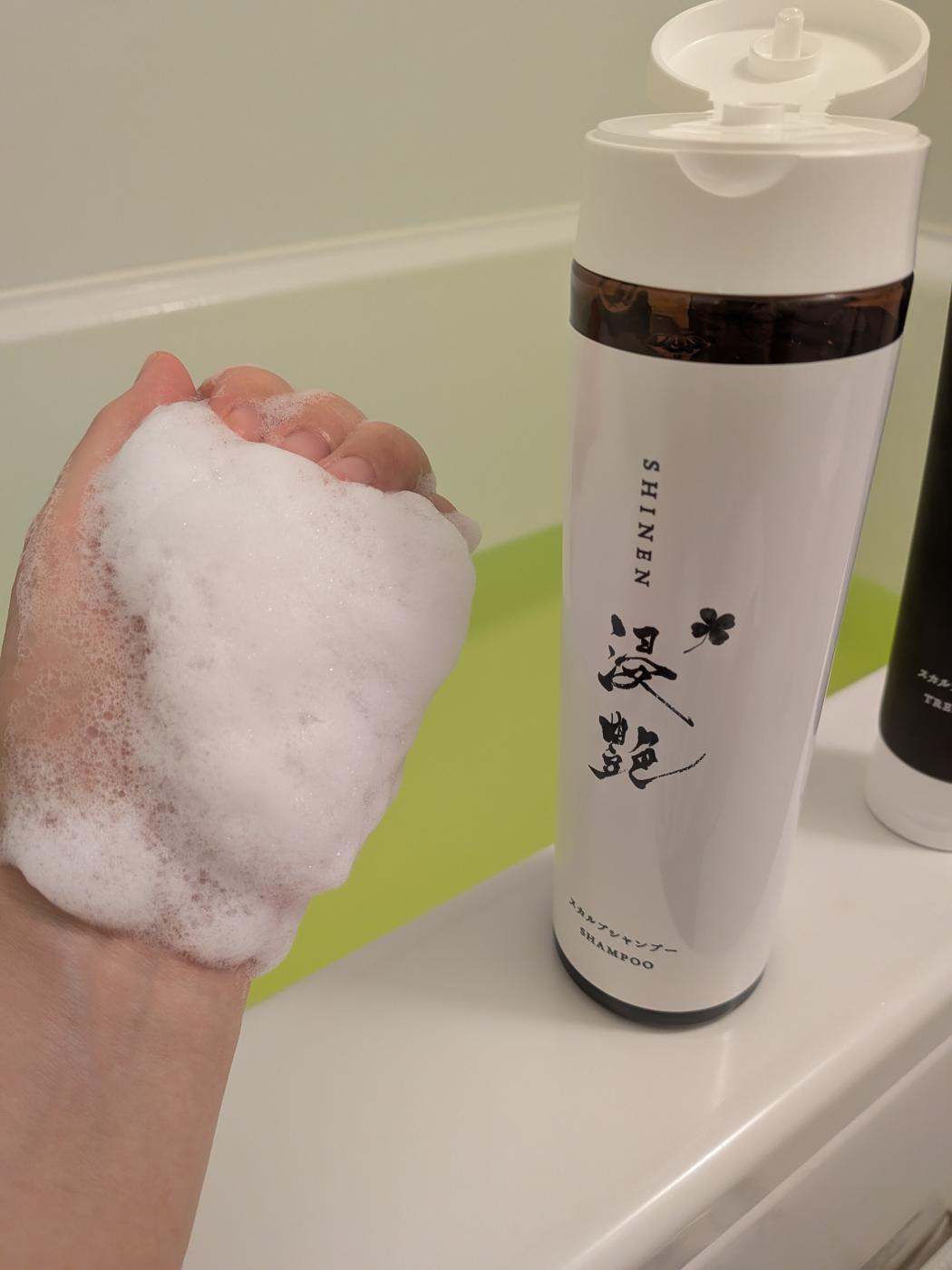 きめ細やかで軽い泡がふわっと作れます。頭皮をマッサージするように意識して洗っていきます。キシキシは全くしないし、洗い上りの髪の毛がなんだかプルンプルンになったような感じがしました☆