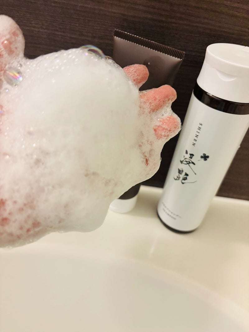 予洗いしてから使用していきますが、ふわふわ系の軽い泡立ちになっています。