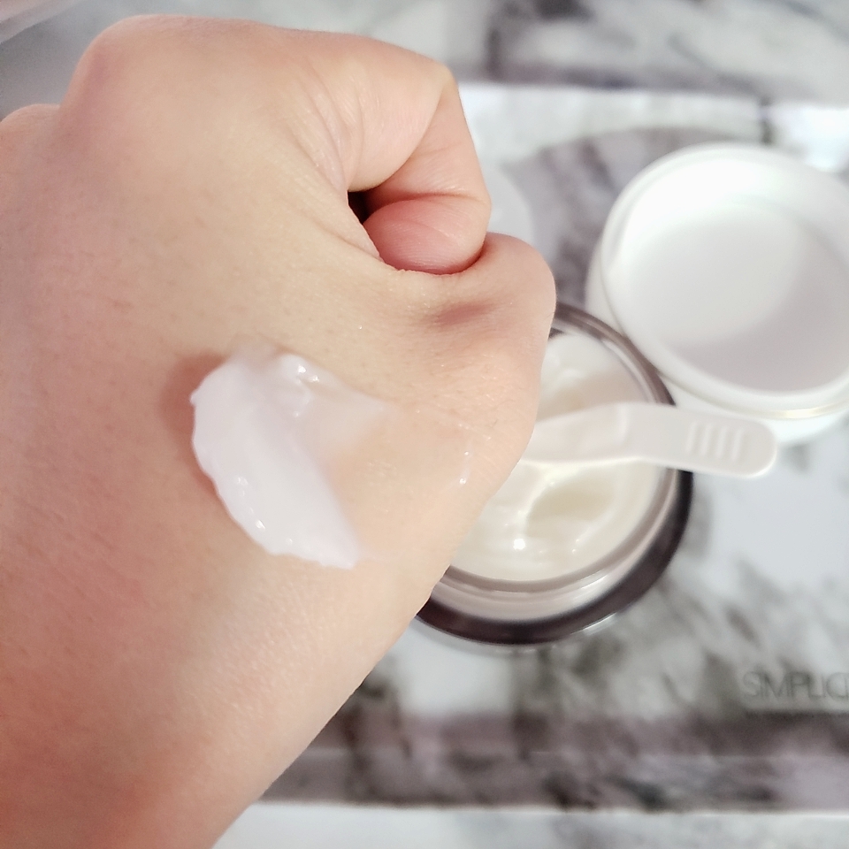 テクスチャーはやわらかめで、スパチュラ1cmが目安ですが、少量でもよく伸びてくれます。香りはほぼ無臭に近いので、気になりません。