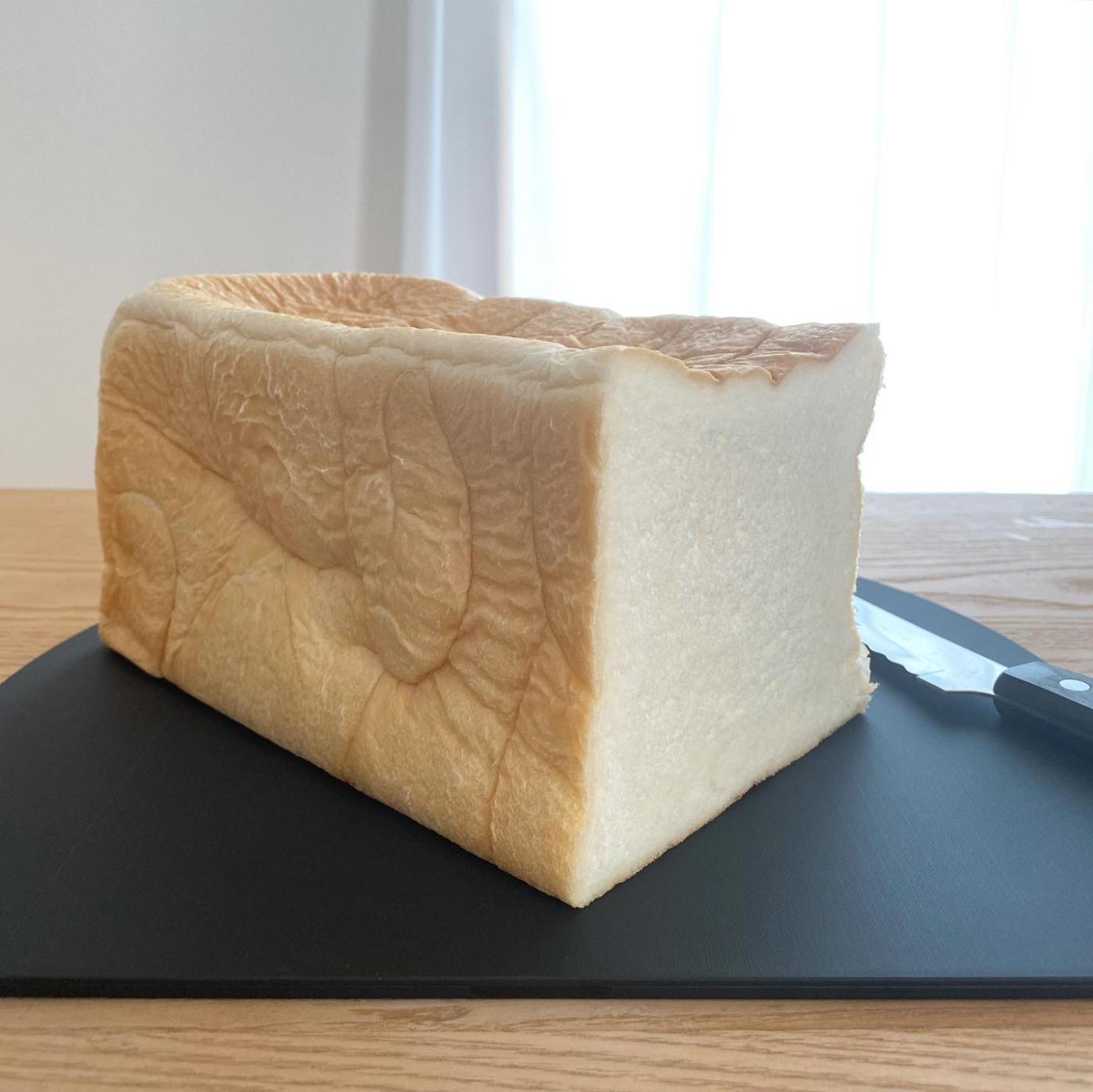 オーブンから食パンが焼き上がったらそのまま専用瞬間冷凍機に食パンを保管するシステムでつくられた食パンです。