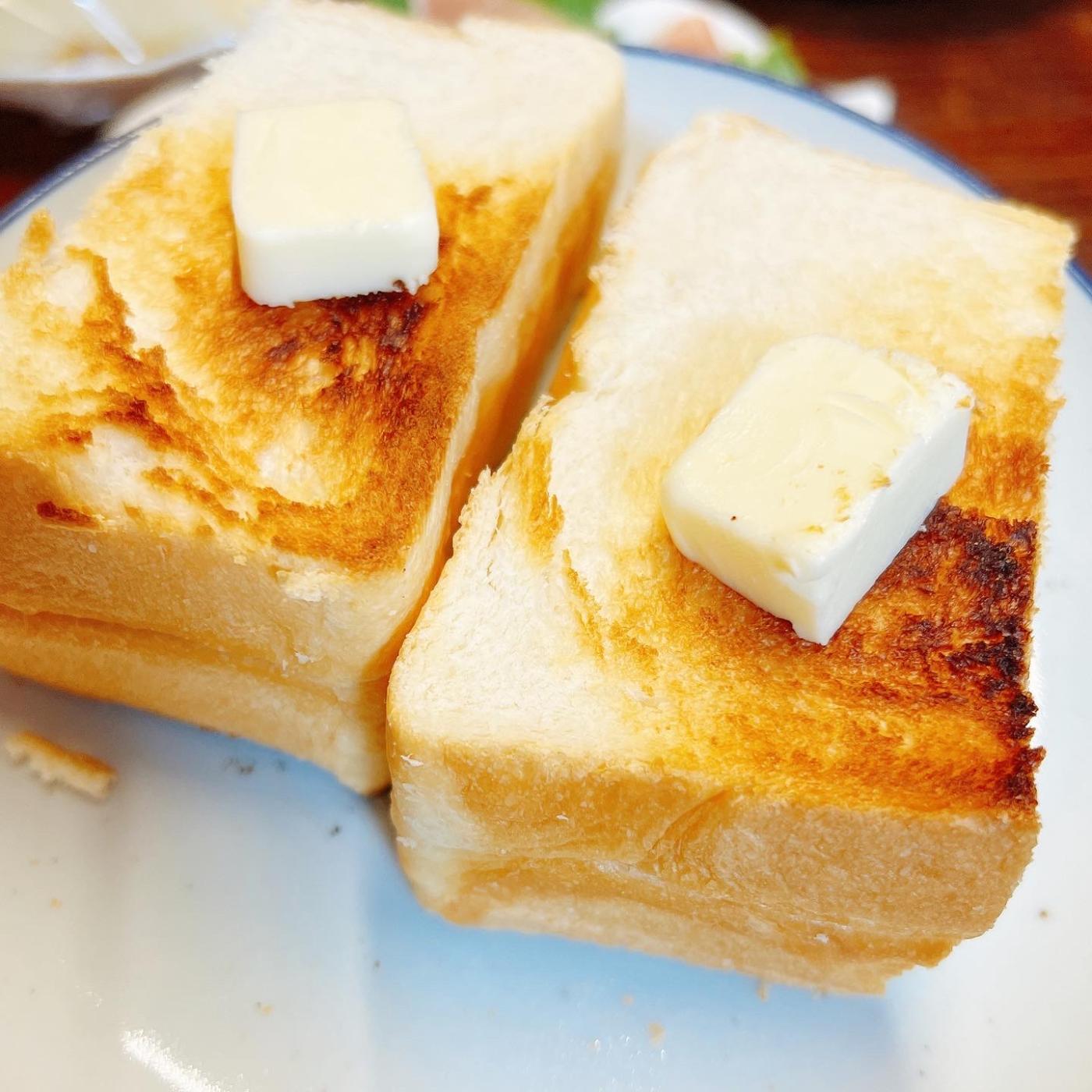 い志かわのパンをカリッと焼いて厚めに