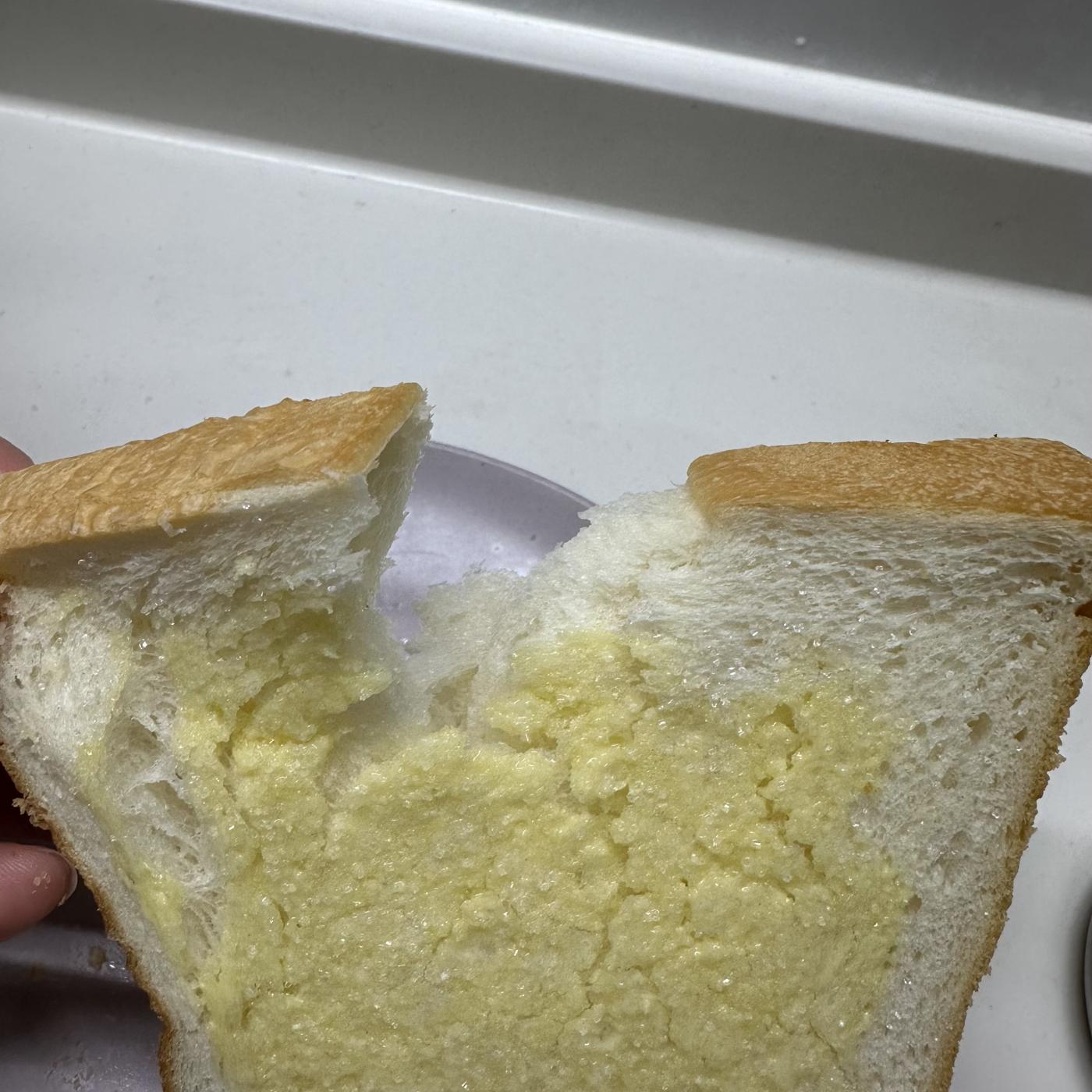 1.2歳の子供の朝ごはんに、シュガーバタートーストをして出しましたが、2人とも綺麗に完食でした✨️いつも食べているスーパーで買う食パンは耳が硬かったりモチモチがそんなに無いので途中で残してしまっていました🥲ですが、フワフワでモチモチのこの食パンを夢中になって食べて『モチモチで美味しー!』と言ってました🤭