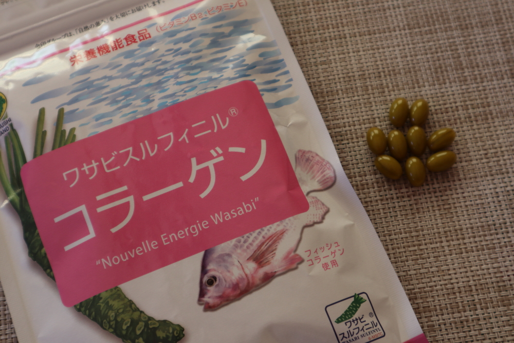 ワサビスルフィニル「コラーゲン」は毎日9粒いただきます。