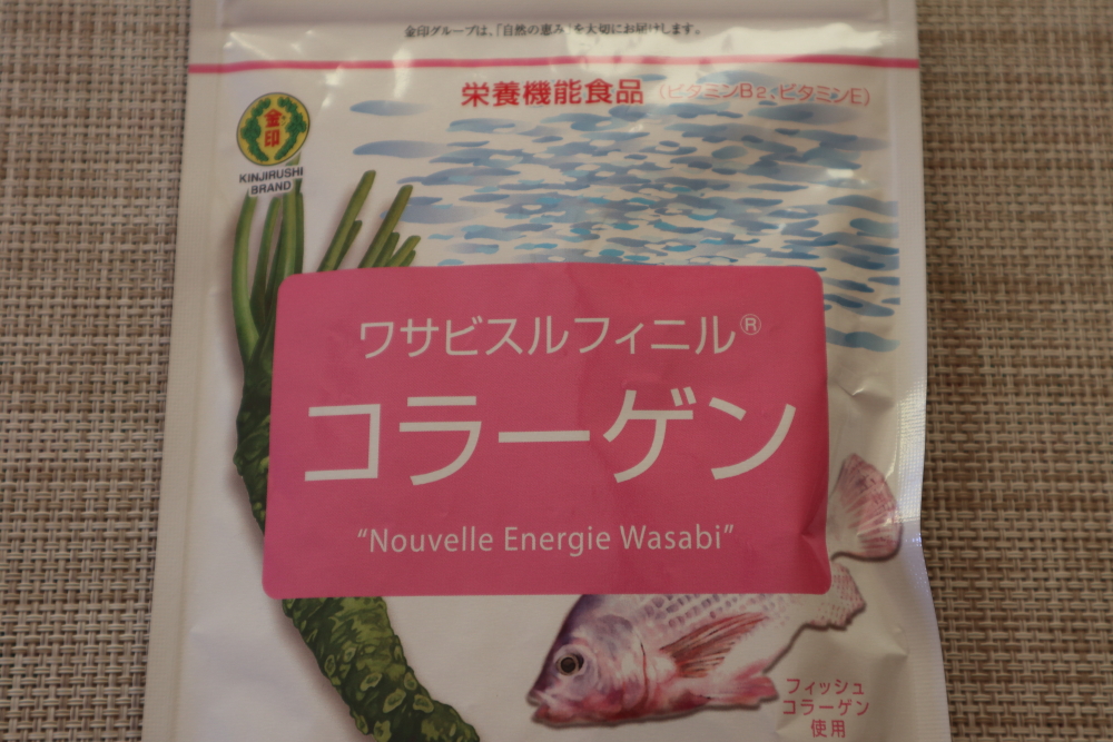 今回は、金印のワサビスルフィニルに高濃度フィッシュコラーゲン1000㎎配合した