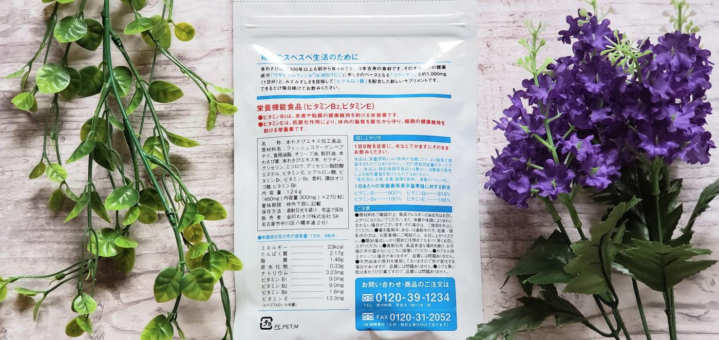 こちら、コラーゲンだけじゃなくなんと“わさび”(ワサビスルフィニル)も配合されてます。