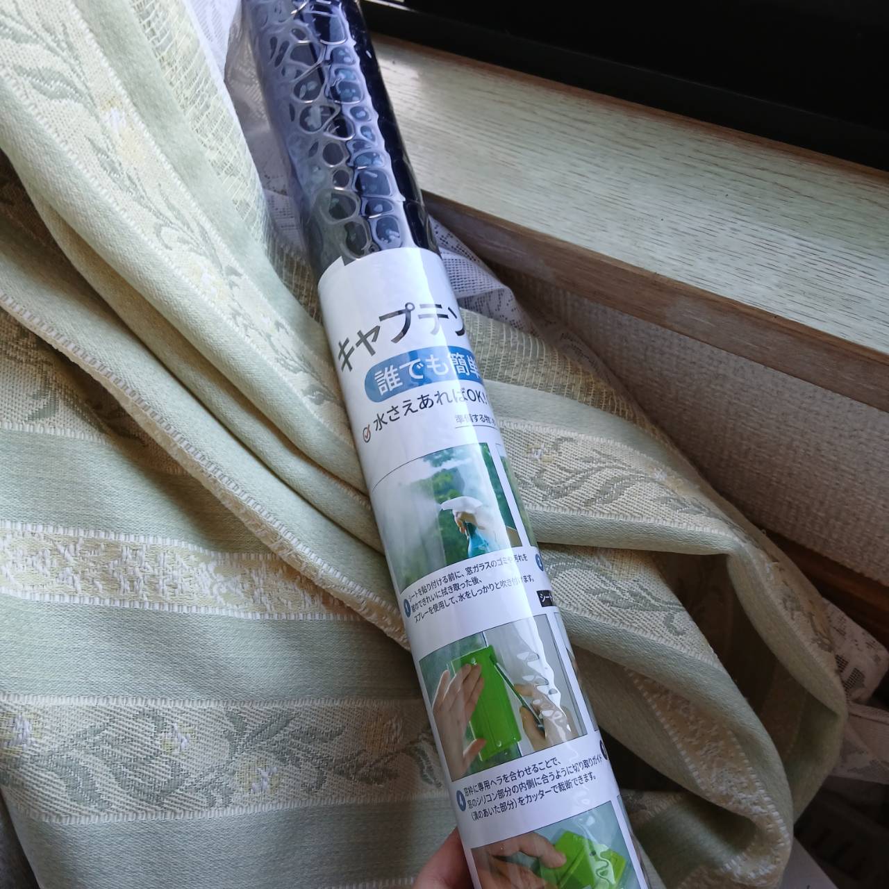 取り付け方も簡単です。貼る前に窓ガラスを拭き掃除をして、水を吹きかけて、貼り付けるだけ。