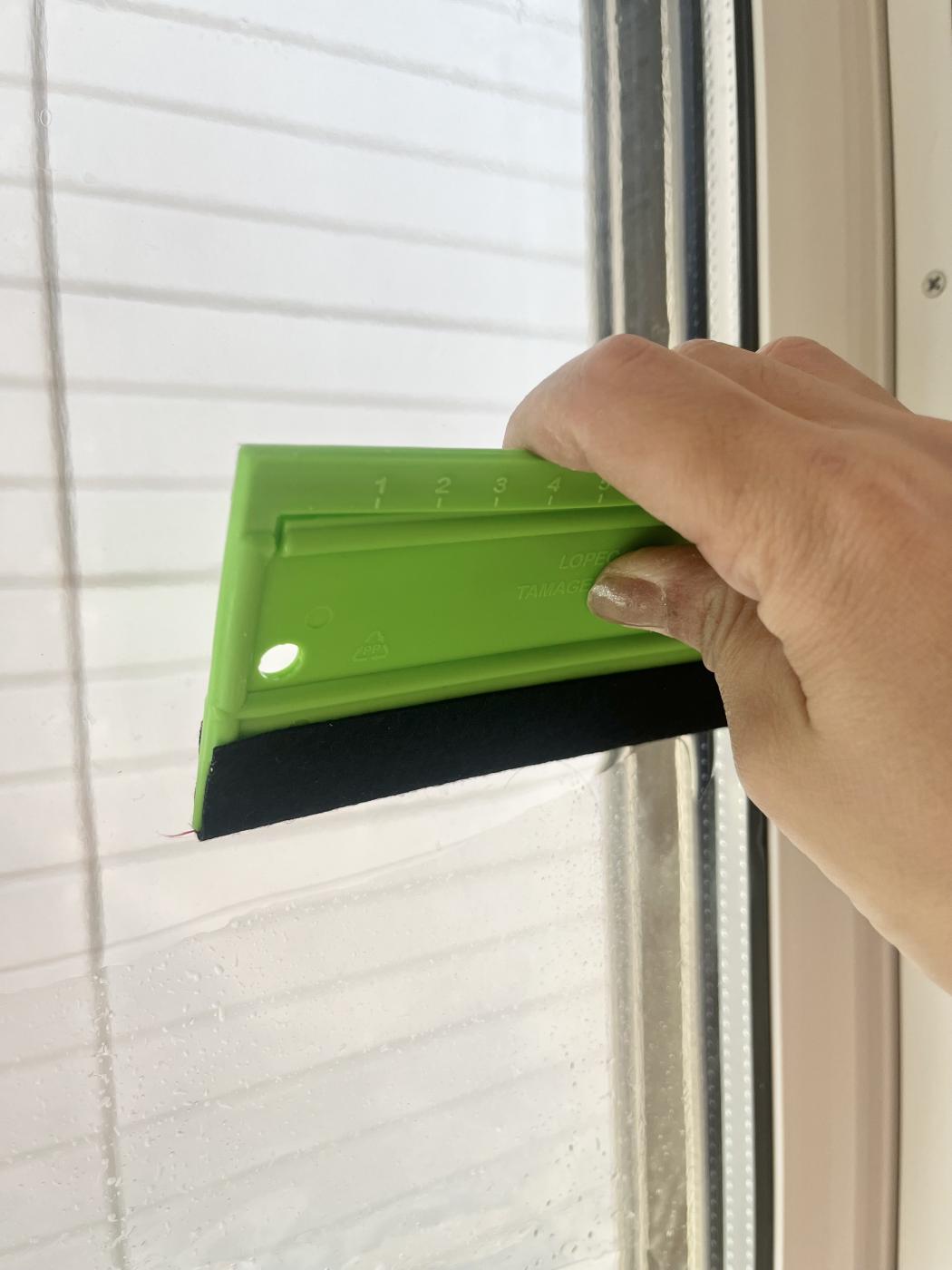 水を窓に吹きかけて、フィルム貼って
