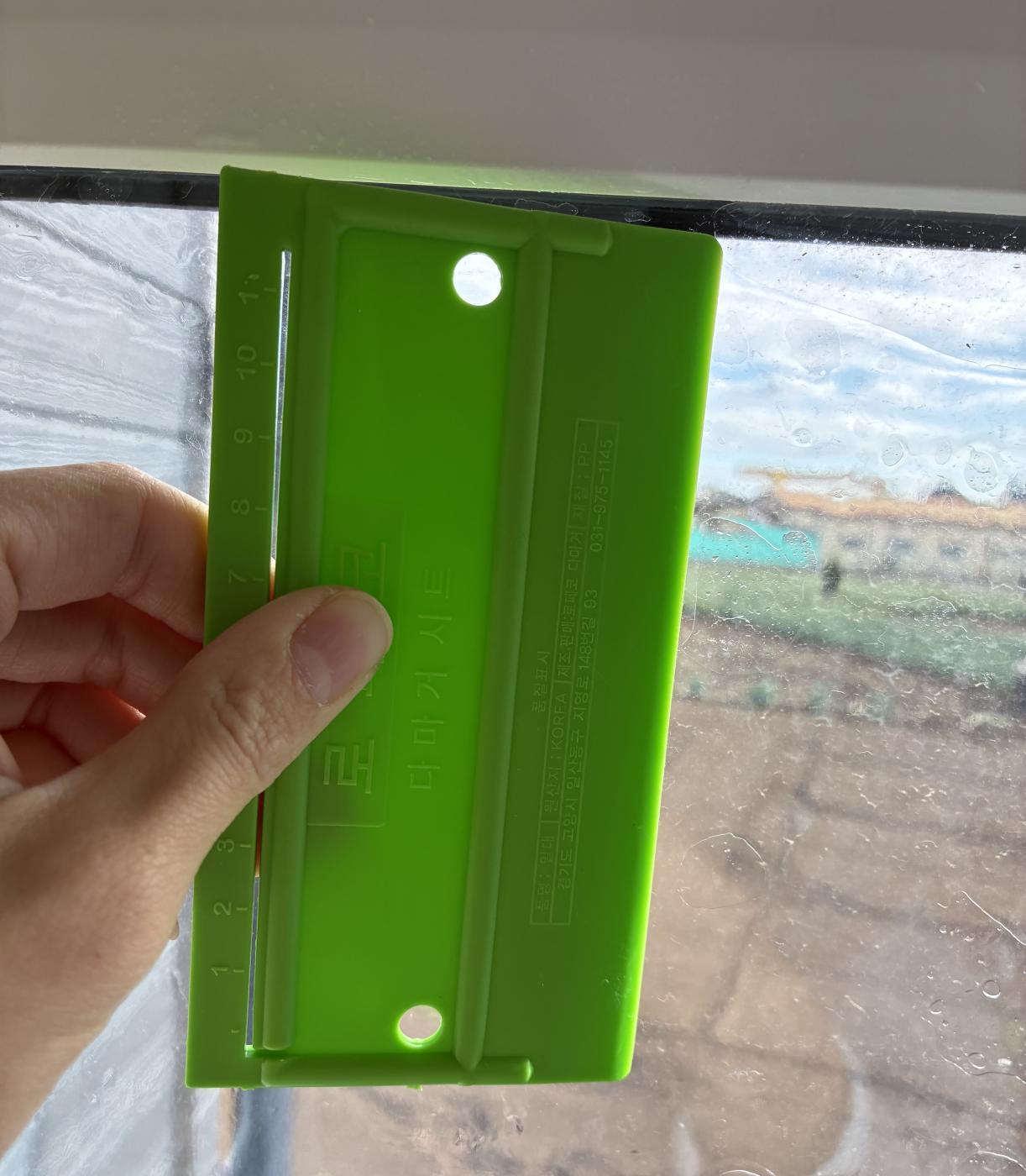 窓に水を吹きつけてシートをはります。