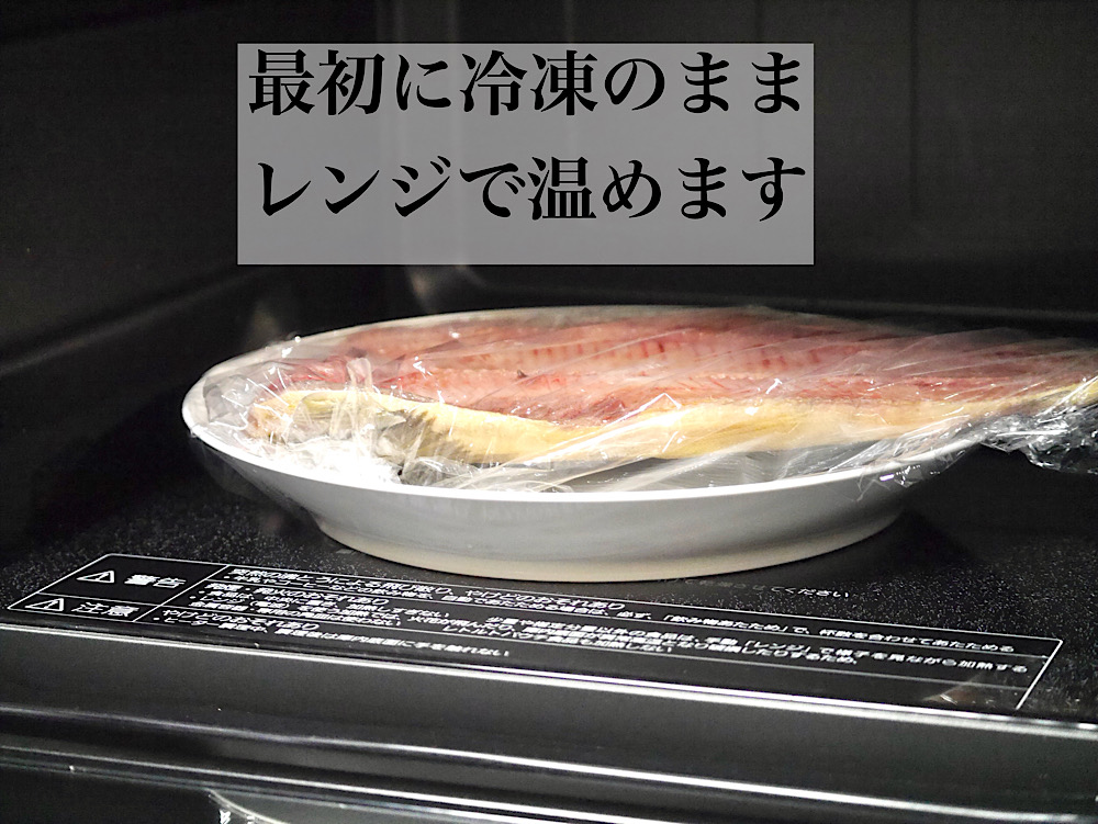 美味しくいただく方法として、最初に凍ったままレンジで解凍するように温めます。その後グリルにて焼くというやり方でやってみました‼️
