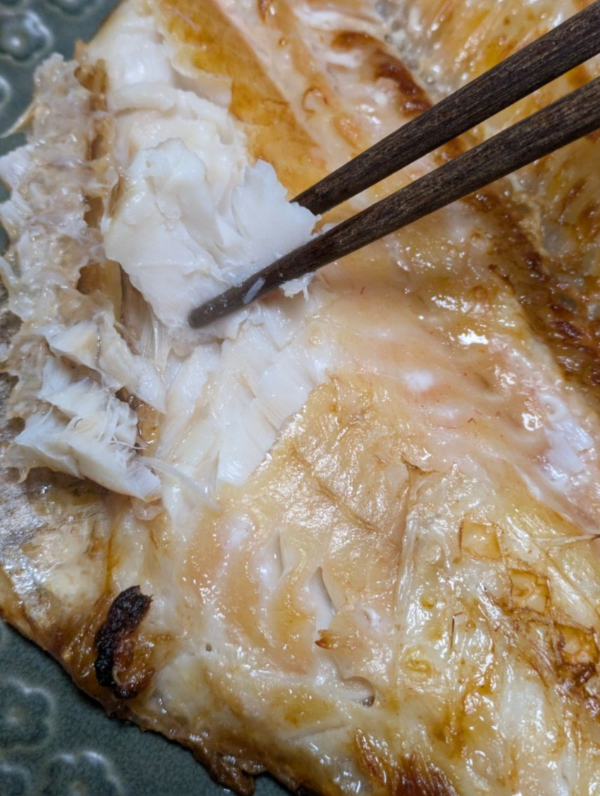 今日のおうちごはん わだつみ様の『赤魚開き干し』 開けてびっくり‼️ 大きな赤魚です。 冷...
