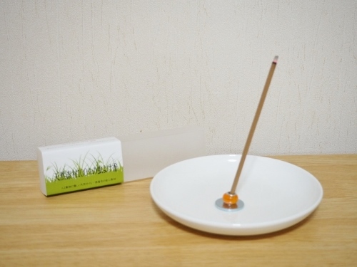 お香立てにお香を立てて火をつけて焚いてみたところ、