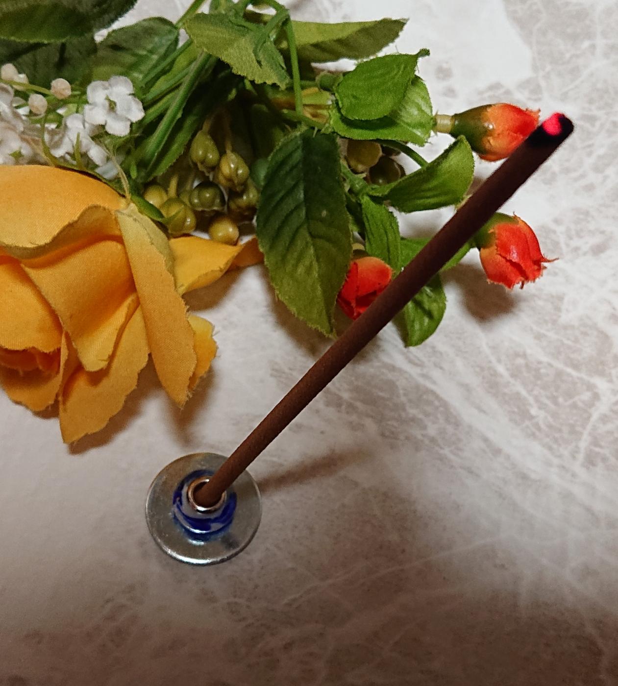 トンボ玉の下にプレートがあるので重さもありしっかり安定して長いお香でも立てることが出来、少しの風や振動では倒れたりしないのもとてもありがたいなと思います