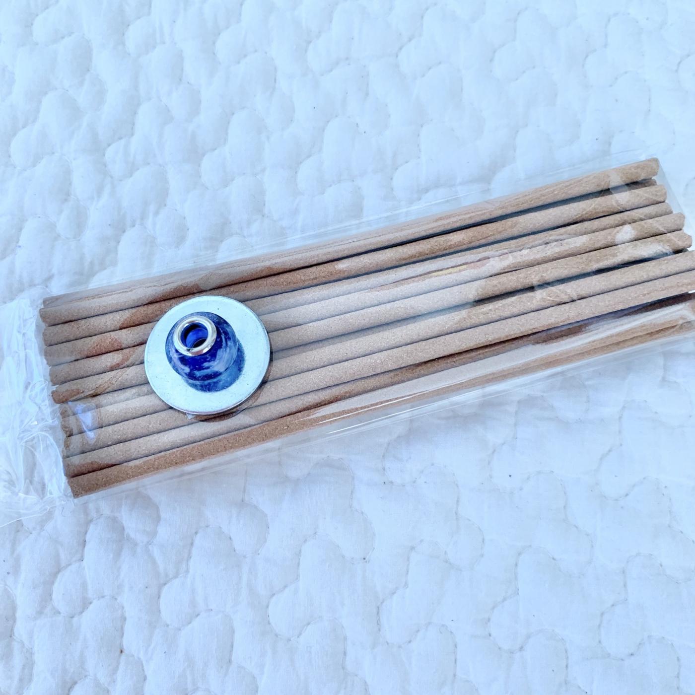 小さくてかわいいブルーのお香たてを、キャンドルホルダーに置いて使っています。