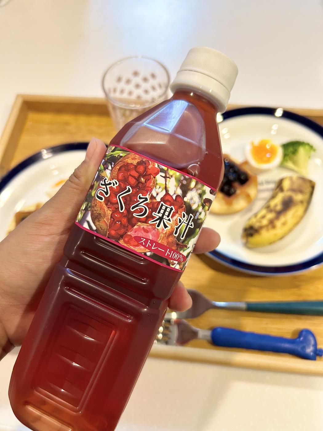 次にザクロを飲んでみました。赤い実と種だけを使っているそうで、渋みがほとんどなく、自然で上品な甘さが特徴です。甘すぎず、ジュースとして飲むのはもちろん、ヨーグルトにひとさじ入れると簡単にデザート感覚になります。私の場合、炭酸で少し割って飲むのも爽やかで気に入りました。