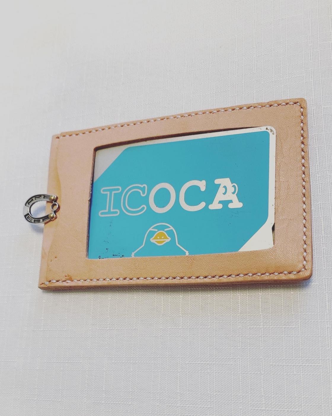 牛ヌメ革のICカードホルダー♪ 手作り感がまんさいの牛ヌメ革で作られています。 馬蹄型がアクセントに...