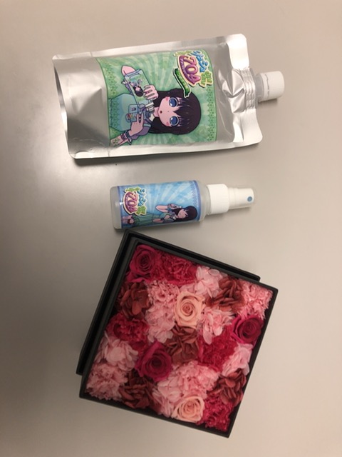 今回「シュシュ704」をお試しさせていただきました。かわいいアニメのシールがついていまして、本来はコスプレの際などに使ってくださいね♪という商品なのですが、私はちょうど会社でPCを使用する時に使用するスプレーが欲しかったため応募させて頂きました。(会社で使用するため、物撮り以降はごめんなさいアニメのシール剥がさせていただきました。。)あるとないとでは大違いと言いますか、卓上に常にこのスプレーがあるだけで安心感がありました。また、電話やペンなど数え上げたらきりがないほど日中いろんなところ、いろんな物を触っているなと改めて認識しました。詰め替えの量もちょうどよく、アルコール臭くもないのでとても使いやすいです!良い商品をお試しさせて頂き、企業様誠にありがとうございました。