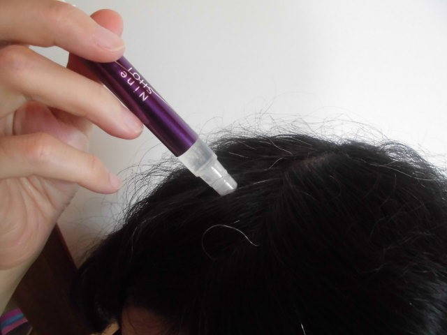ノック式の注入するタイプの頭皮用美容液で、先の方に小さな特殊ニードルが付いており、珍しいタイプの頭皮用コスメだと思います。