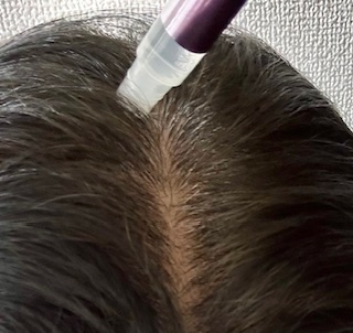 ②ノック式ボタンを頭皮に垂直にあてて1回プッシュ!