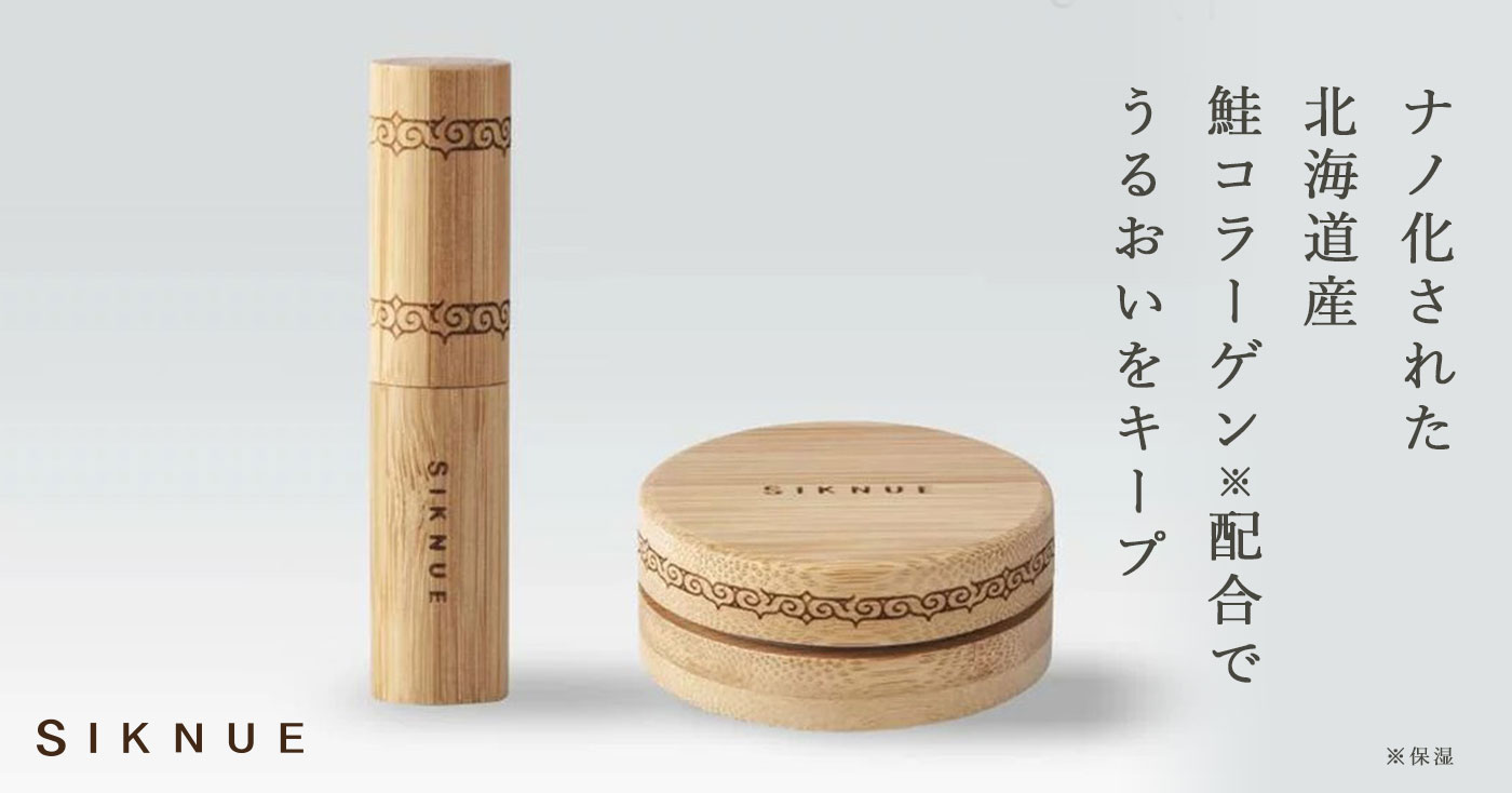 SIKNUEは、北海道の大自然に育まれたヨモギ、熊笹、鮭のコラーゲン、スズランなど、アイヌ民族に昔から親しみのある天然の素材をシンボルの成分としています。