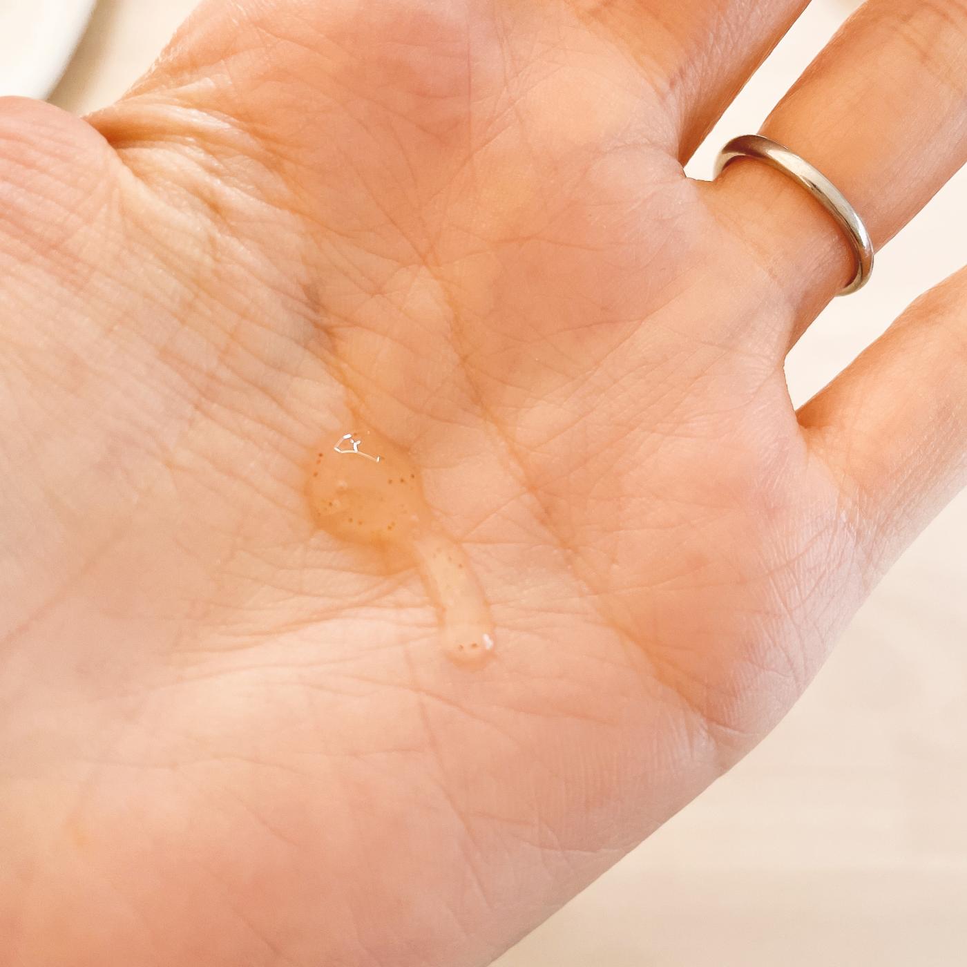 ジェルは透明で米ぬかのつぶつぶが目でもしっかり確認できるほど混ざってました。