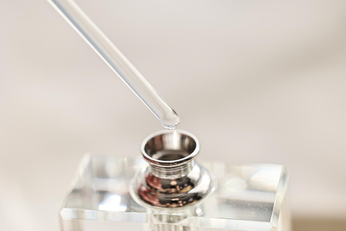 香水瓶はガラスのカッティングが美しく、面取り部が光を反射し、まるでサンキャッチャーのように輝きます