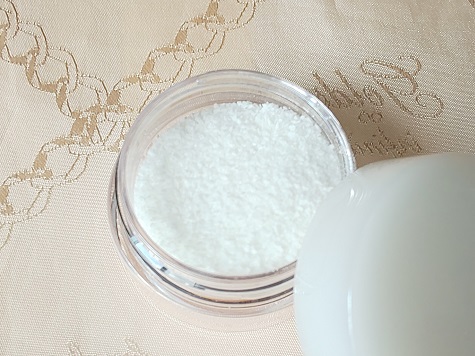 扱いやすさよりも、安全で刺激のない優しい石鹸を作るために、水分を含まない粉末状にしました。