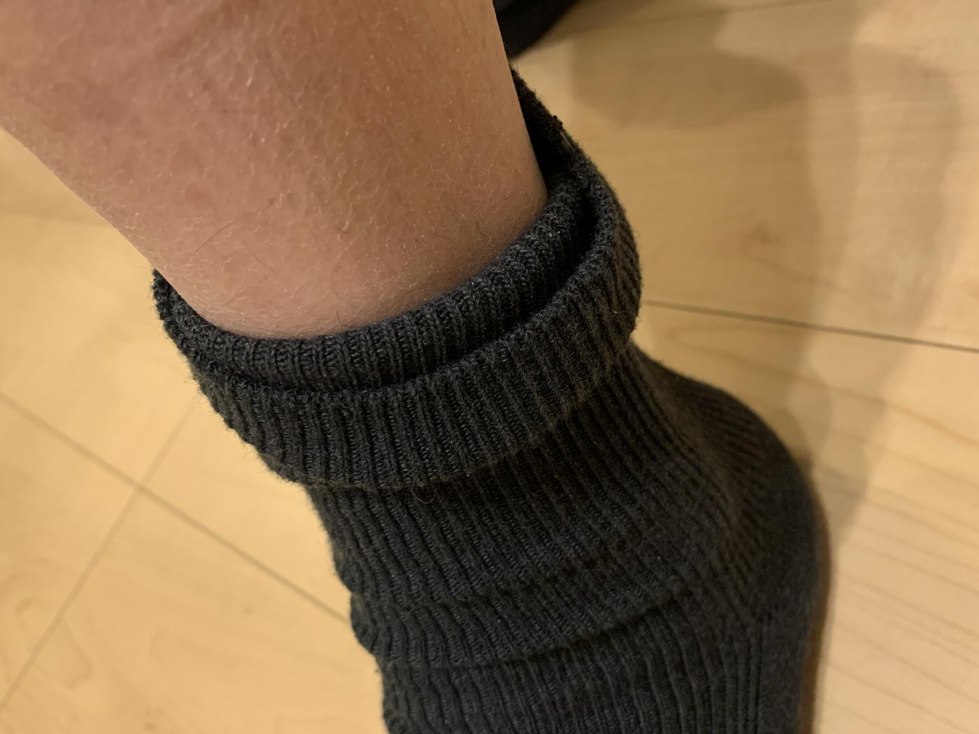 だけど、お風呂の前に靴下を脱いだとき、結構足首というか、靴下のゴムの部分の跡がついていて、締め付けられている感があるのを見て、妻としては気になっていました。