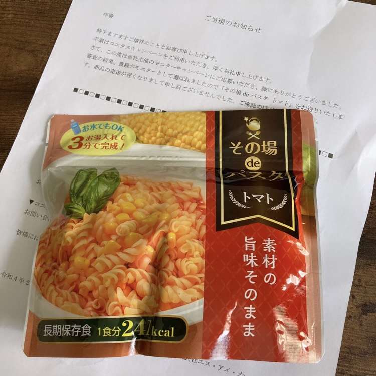 S.I.O. Japan様より、長期保存できる非常食「その場deパスタ トマト」をいただきました!