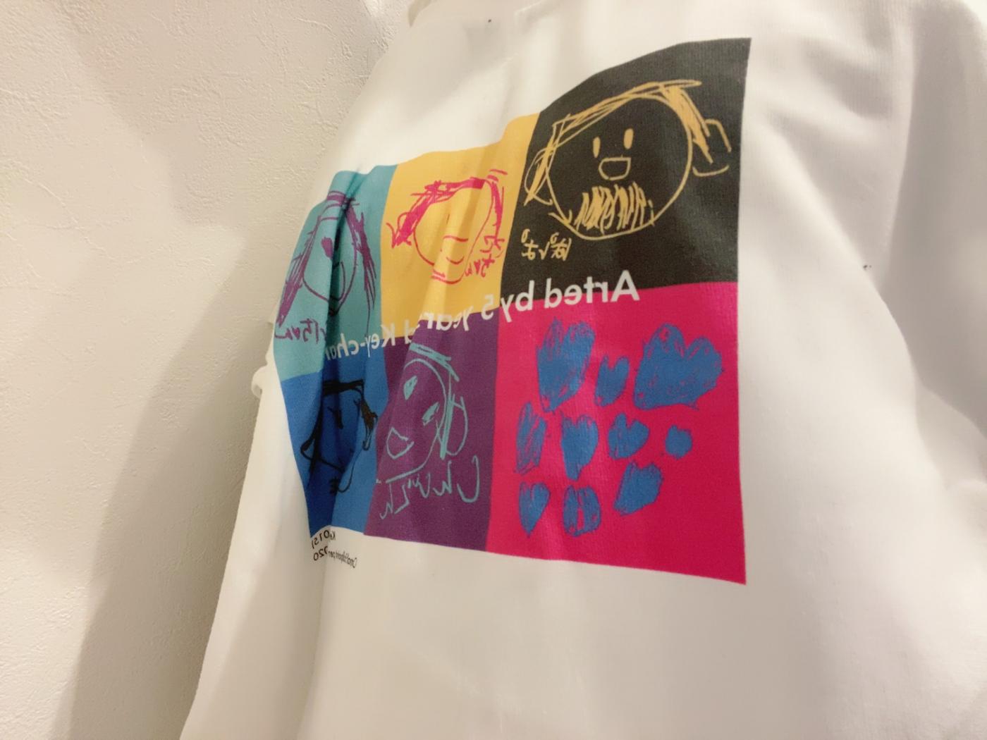 そして、1枚目の画像が、元々の絵とデザインして下さったTシャツです。うまく拡大やデザインしてくださったり、もう完璧でした!娘のデザインが丸々と入ってくれています!