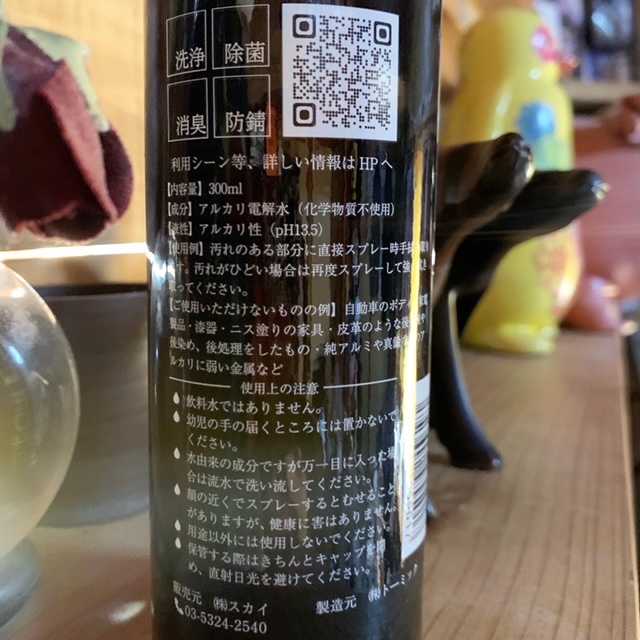 こちらは水から生まれた、化学物質不使用のアルカリ電解水。