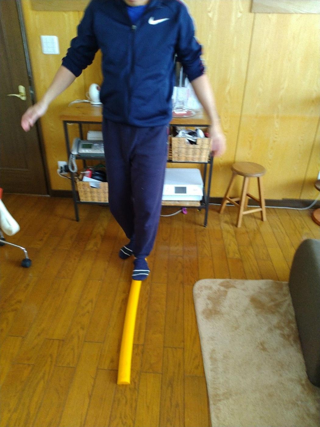 バランスや体幹悪すぎね~!裏の説明書にあった片足立ち歩く はできたけど、しゃがむ をしたら