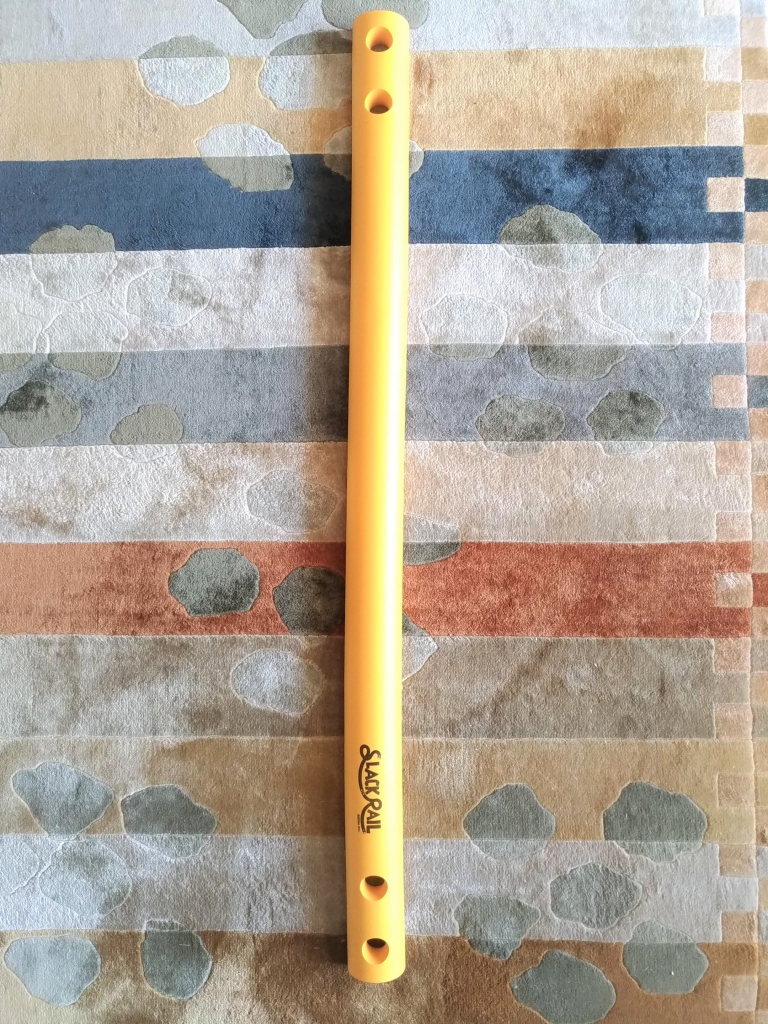 スラックレールは、床に置いて乗り、バランスをとることにより、スラックラインに必要な「体幹」「バランス」「集中力」を養う事が出来ます。