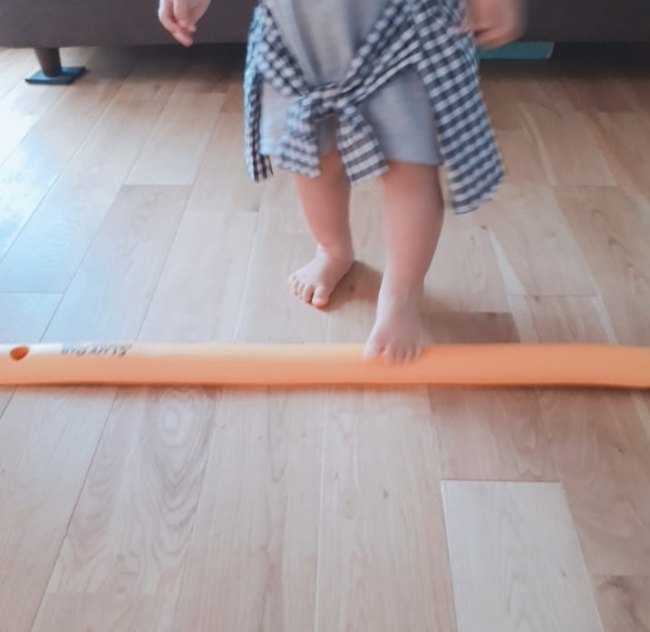 私が必死にバランスを取りながら歩こうとすると、娘は遊んでると思って一緒になってやってくれます。