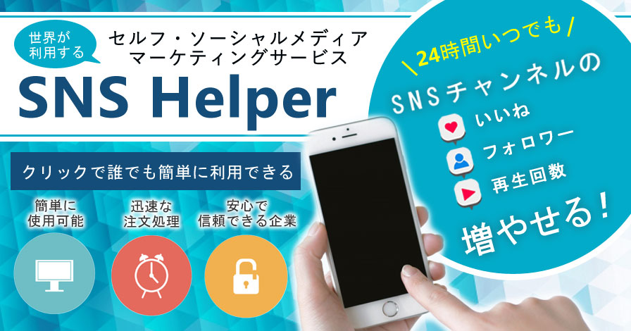 世界各地で愛用されているセルフ・ソーシャルメディア・マーケティングサービス、Twitter、Facebook、Instagram、Youtubeなど全てのSNSチャンネルのいいねやフォロワー、再生回数を簡単に増やしてみてください!
