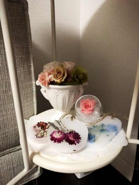 インテリアは、可愛いものに囲まれたいという気持ちもあります。でも、ものだとごちゃっとしますが、そこで、ステキな香りに囲まれたい!ということで、店長オリジナル【ハーバリウムキャンドル】ボタニカルキャンドルホルダーを使ってみました。