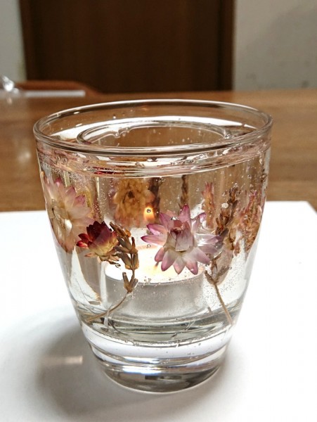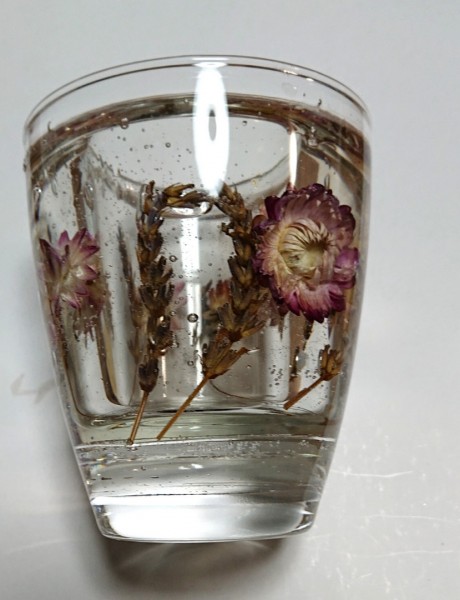 グラスが2重になっていてその間がハーバリウムになっているのです。