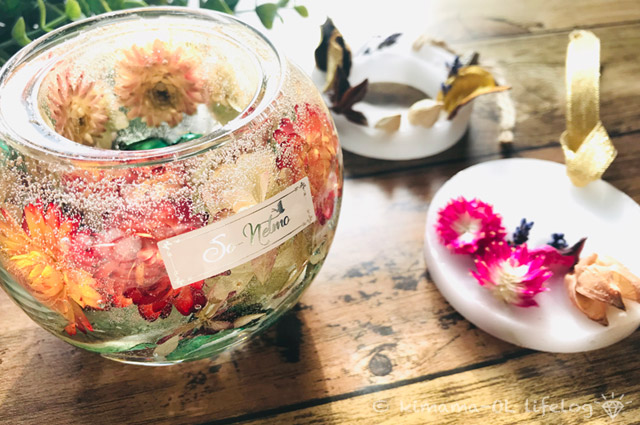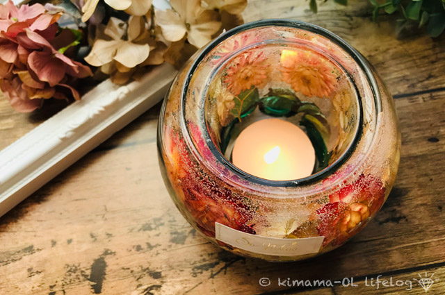 ハーバリウムが流行りだしてしばらく経ちますが、キャンドルホルダーになっているのはあまり見ないですね。