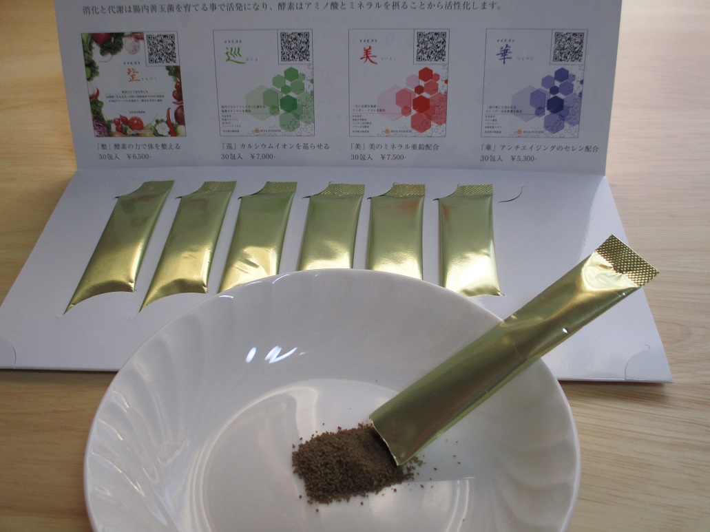 スティックの中には茶色の粉末が入っていて、朝または就寝前の空腹時に水またはぬるま湯で毎日1包を目安に飲むと良いのことです。