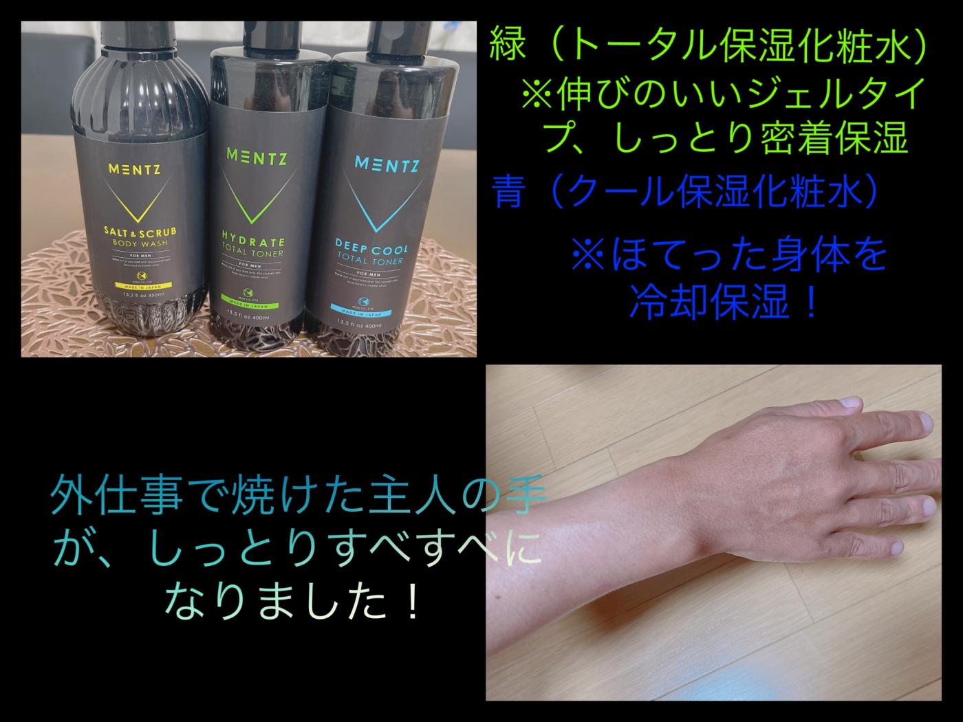 外仕事で焼けて荒れていた肌もしっかり保湿されてしっとりつるつる肌になっていました!