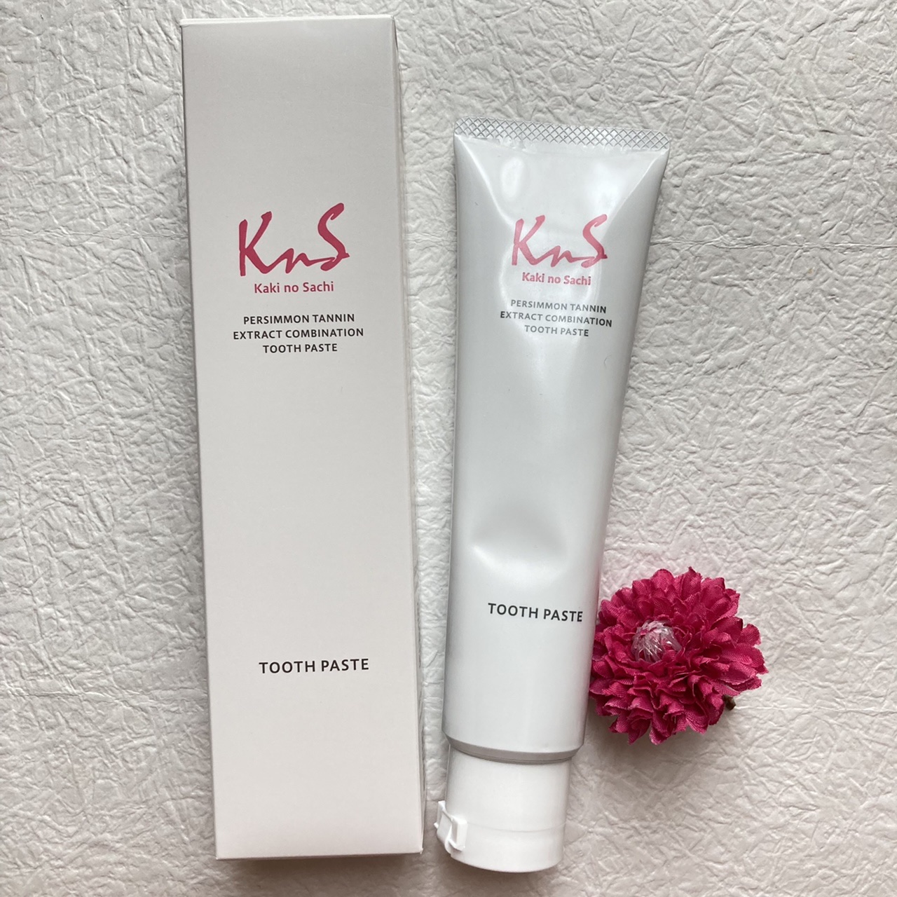 古来から防菌防臭に活用されてきた柿渋エキスを配合しています。柿渋と聞いて歯磨き粉に入っているなんて想像もつきませんでした。どんな味?どんな色?と思ったのが最初の印象です。