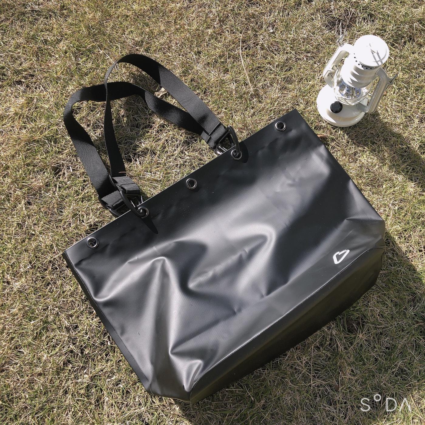 CAMP TOTE 防水素材の、カラビナ付きレジャーバッグ! このカバンの素材はいままで持ったことがあ...