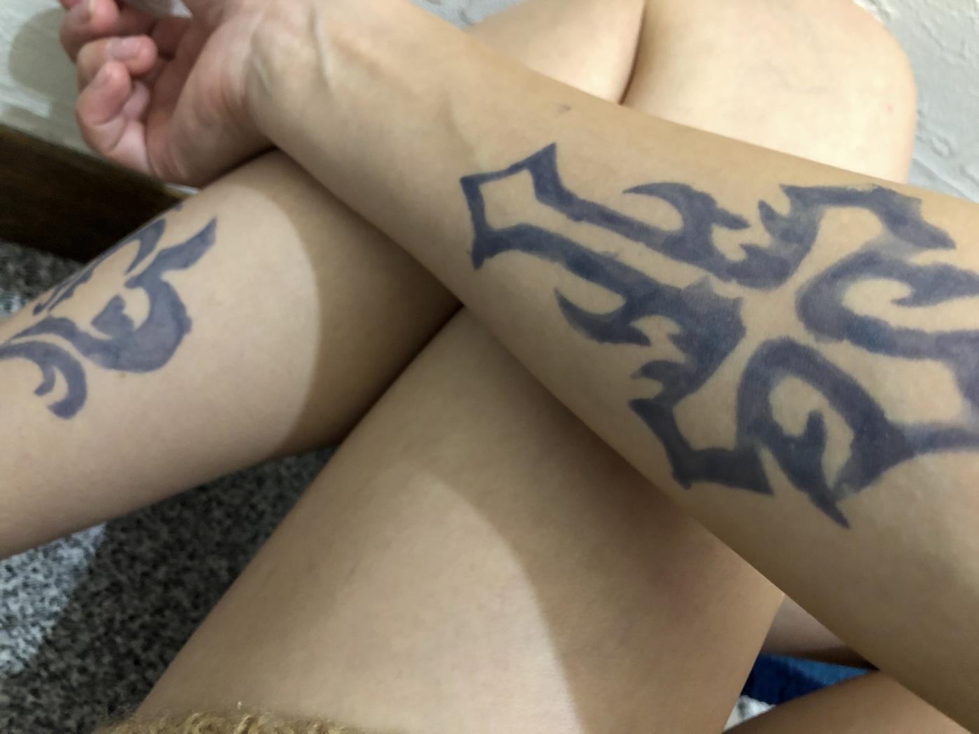 2枚目は、送付されたシールを使って描いた模様になります。3日後の様子で、色が濃くなって本物のような感じに仕上がりました✨擦っても汗をかいても服に色が付くこともなかった?