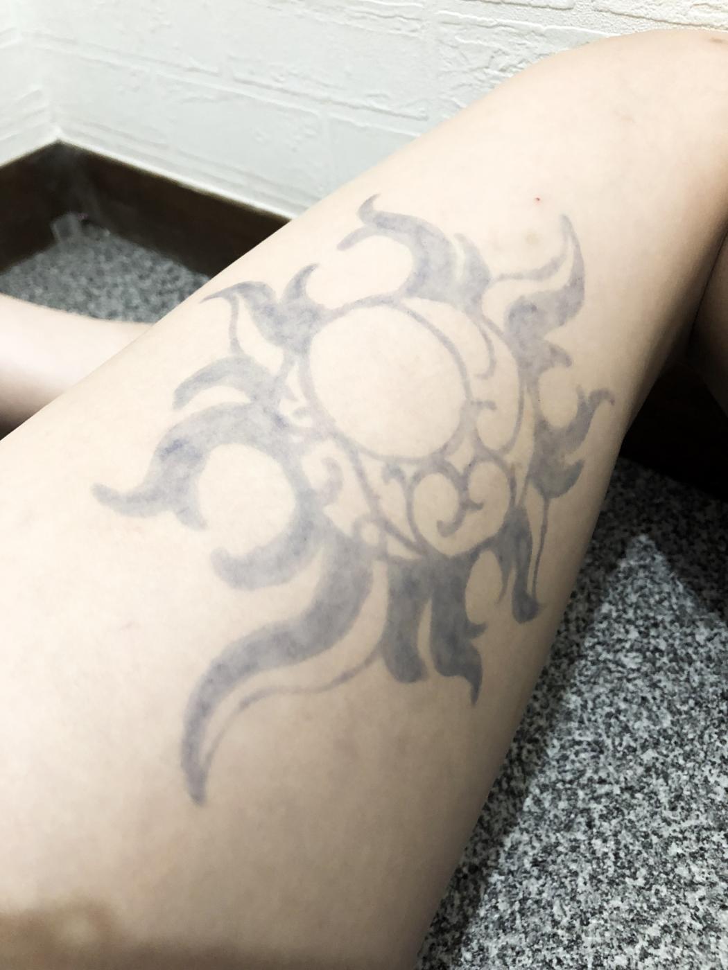 これは二週間程度で消えるタトゥーです。皮膚の表面を染めて角質が剥がれ落ちていくとともに色もだんだ...
