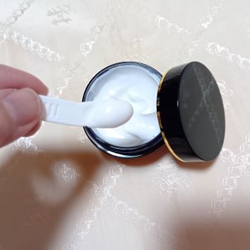 白いクリームは、なめらかで伸びが良く肌なじみが良いです。