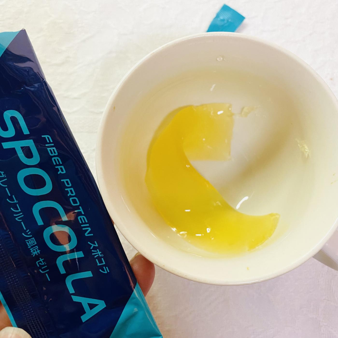 グレープフルーツ風味。さっぱりさわやかさがあり食べやすい。スポーツの後にこの甘酸っぱい感じは個人的に良いなと思います。しかもちょっと食べ応えのあるゼリーで美味しい。