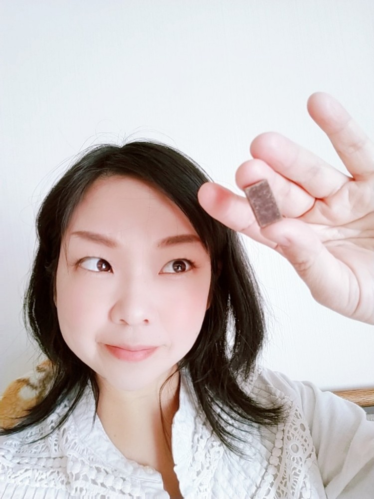 サイズが約2cm×1cm×5mmのひと口サイズのレンガ型のチョコレートだから、どうしてもチョコレートが食べたくなったら、ヘルシーカカオを3粒だけ口の中で溶かしながら楽しんでいます。
