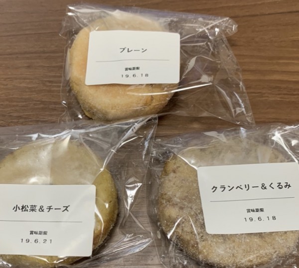 小松菜&チーズ、クランベリー&くるみ、プレーンの3つ