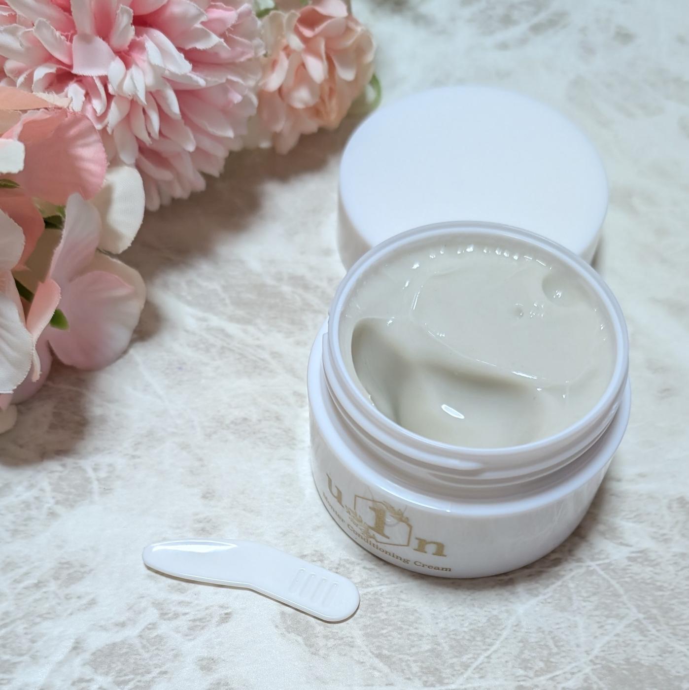 蓋を開けるとグレーっぽいお色のクリームが出てきます。