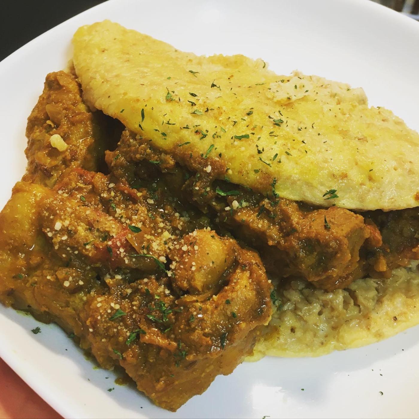 ポークカレーはオートミールで作ったパンケーキに挟みカフェ風に♪